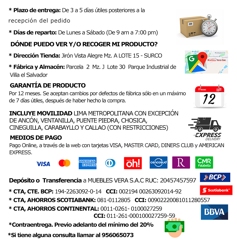 Material: melamina de 18mm. Con 03 cajones con chapa de seguridad Cada cajón...
